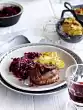 Deglaze with wine and 3⁄4 l water. Stir in stock, bring to the boil, cover and braise over medium heat for about 2 hours.