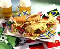 Cut the cured pork in half. Peel onion and cut into rings. Wash the cucumber and cut into thin slices. Wash salad, dab dry.