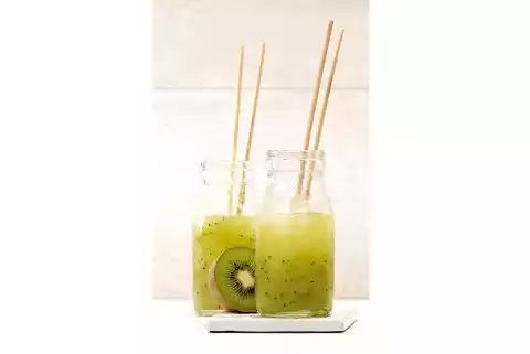 Peel and finely grate the ginger. Peel kiwis and cut into pieces. Wash, peel and chop the cucumber. Peel, quarter, core and chop apples. Wash mint and dab dry.