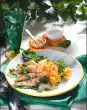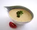 whisk milk, cream and sauce powder vigorously with the whisks of the hand mixer for about 1 minute