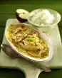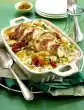Grease round gratin dish. Layer fillets and spring onions. Pour tarragon-mustard sauce over it. Sprinkle with cheese. Bake in the preheated oven (electric cooker: 200 °C/ convection oven: 175 °C/ gas: level 3) for about 15 minutes. Delicious with baguette bread