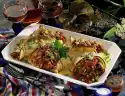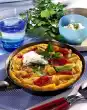 Place the pancakes one by one in a greased casserole dish, filling each one with the paprika vegetables and folding them over. Cover with mozzarella slices. Cook in the preheated oven (electric range: 225 °C/recirculating air: 200 °C/gas: level 4) for 10-15 minutes until golden brown. Sprinkle with remaining oregano