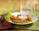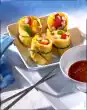 Spread the cracker mixture over the packets and bake in a preheated oven (electric cooker: 200 °C/ convection oven: 175 °C/ gas: level 3) for approx. 8 minutes. Clean and wash the peppers, dab dry and cut out 4 fish with a cookie cutter. Cut the remaining peppers into cubes. Heat 1 tablespoon of fat and fry the bell peppers for about 3 minutes. Cut open fish parcels if necessary and arrange on plates with sauce and diced peppers. Garnish with paprika fish and lemon balm. Delicious with baguette bread
