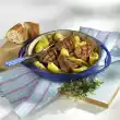 Pour the fricassee into an ovenproof dish. Crumble the toast, sprinkle over. Spread 1 tablespoon of fat in flakes on top. Bake in a hot oven (electric cooker: 200 °C/ circulating air: 175 °C / gas: level 3) for 20-25 minutes