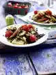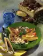 Wash and peel the asparagus and cut off the woody ends. Halve the asparagus. Clean and peel the carrots. Clean and wash the mangetouts. Bring 1/4 litre of water to the boil. Season with salt and sugar.