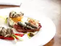 2 days later wrap salmon out of the foil and remove some stain. Use a sharp knife to cut the salmon diagonally into thin slices. Mix sour cream with mustard, season with salt and pepper. Serve salmon with mustard cream, with bread chips and cress if desired.