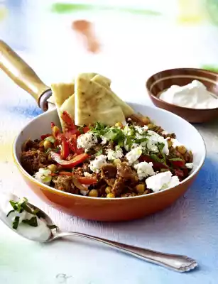 Coarsely crumble the feta and sprinkle parsley over it. Serve with: 1 blob of Greek yoghurt and pita or flat bread.
