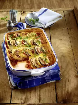 Wash the potatoes and cook in boiling water for about 20 minutes. Wash aubergines, grate dry and cut into slices. Place on kitchen paper and sprinkle with salt. Leave to stand for about 15 minutes.