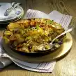 Layer 3/4 of the potatoes and minced meat in a large greased casserole dish. Layer aubergines, tomatoes and the rest of the potatoes on top. Spread the sauce and cheese on top. Bake in a hot oven (electric cooker: 200 °C/ convection oven: 175 °C/gas: level 3) for about 40 minutes until golden brown