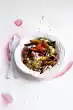Wash the chervil, pluck the leaves. Wash organic lemon hot and dab dry. Grate the peel. Squeeze both lemons. Mix lemon peel and juice, chervil and 3 tbsp. oil and mix with the vegetables.
