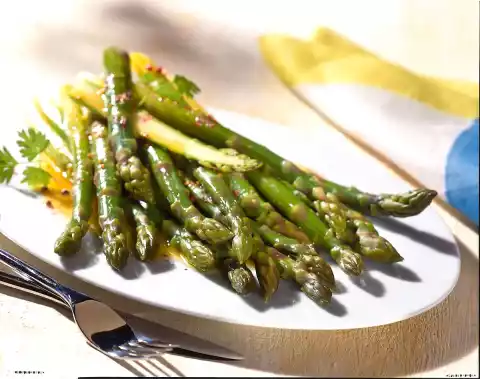 Wash the asparagus and drain well. Peel only the lower third of the green asparagus and cut off the ends. Bundle the asparagus as desired and cook in boiling salted water for 7-10 minutes.