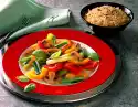 In the meantime, mix vinegar, mustard, sugar, a little salt and pepper. Finally, beat both types of oil into the mixture. Drain the asparagus well and pour the vinaigrette over it. Sprinkle with pink berries and chervil leaves and garnish as desired.