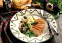 Knead the fat and 1 tablespoon of flour into a smooth dumpling. Stir pieces into the sauce. Let the sauce simmer for about 5 minutes, stirring from time to time. Add mustard and season the sauce with salt, pepper and sugar.
