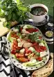 Fold the rest of the basil into the salad. Mix sauce and salad. Pick the rest of the tuna into pieces and carefully fold into the salad. Garnish with caper apples.