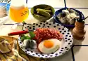 Finely puree everything with the cutting stick of the hand mixer. Season with salt and cayenne pepper. Add remaining peas to the soup and simmer gently for 1-2 minutes. Warm up the prawns and smoked salmon in the soup.