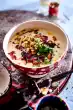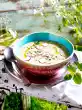 Wash the green spelt and let it drip off. Peel and finely chop the onion. Heat 1 tablespoon of oil in a saucepan. Fry the onion in it. Add unripe spelt grain and deglaze with broth. CA. Let simmer for 10 minutes, then let it swell at very low heat for about 20 minutes.