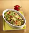 Soak the green spelt for about 12 hours. Pour off. Pour into 600 ml boiling water, bring to the boil, cover and simmer for about 15 minutes. Add green spelt meal, stir in broth, bring to the boil and let it swell for 3-4 minutes while stirring. Let the green spelt cool down a little. Peel onion and garlic and chop finely. Peel and finely dice onion and garlic. Clean, wash and chop the spring onions. Heat 1-2 tablespoons of oil, fry the spring onions and garlic in it. Dust with curry and sauté. Stir in tomato paste and deglaze tomatoes with liquid. Bring to the boil and simmer for about 5 minutes while stirring. Season to taste with salt, pepper, paprika, curry and sugar
