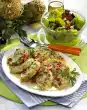 Add vegetable stock and tomatoes. Bring to the boil and season with salt, pepper and sugar. Add the roulades and braise covered at medium heat for about 10 minutes. Meanwhile cook the noodles in boiling salted water for about 10 minutes.