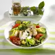 Shortly before serving, fry in hot sunflower oil while turning for about 5 minutes. For the salad, clean, wash and slice the tomatoes. Peel and slice the onions very thinly. Clean, wash and pluck the salad into bite-sized pieces.