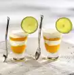 Remove the semolina tartlets from the edge with a knife and turn them over onto plates. Serve with apricot sauce and sprinkle with brittle.