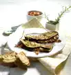 Pickled peppers and flatbread taste good with it.