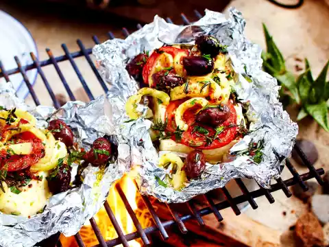 Fold up the foil all around so that packages are formed. Cook on the hot grill for 10-12 minutes.