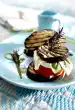 Sprinkle Feta with about half of the herb mixture. Spread tomatoes, peppers and olives on top. Sprinkle with the remaining herb mixture and season with pepper. Sprinkle each with 1 tablespoon of oil.