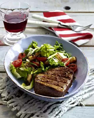 Wash the meat and dab dry. Brush the grill pan with oil, heat it up very much. Add meat and grill all around for 3-4 minutes. Season meat with salt and pepper, place on an oiled baking tray and cook in a preheated oven (electric cooker: 175 °C/ convection oven: 150 °C/ gas: level 2) for approx. 12 minutes until medium heat.