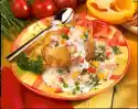 Heat the oil in a frying pan. Briefly sauté the onion in it, then add the tomato juice. Simmer for 2-3 minutes, then season to taste with salt and pepper. Add carrot strips and cook for 3-4 minutes.