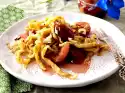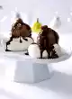 For the caramel sauce, caramelise 100 g icing sugar until golden. Add 100 g cream and milk and dissolve the caramel while stirring.