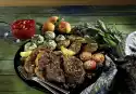 For the sauce, peel and finely chop the onion and garlic. Mix with sugar, ketchup, vinegar, Worcester sauce and mustard. Simmer for about 15 minutes at low heat. Season to taste with salt and cayenne pepper.
