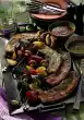In the meantime wash the ribs and pat them dry. Grill for about 20 minutes on the hot grill. Turn the ribs from time to time and spread with a little sauce. In the meantime, peel and slice the onion, pin it with wooden skewers and grill it for 10-12 minutes.