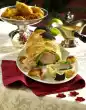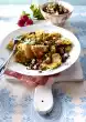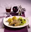 broccoli and medallions. Pour almond butter over the broccoli. Garnish with the rest of the marjoram leaves. Serve with baguette.