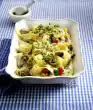 Put the cheese spread in a bowl and sprinkle it on top. Small boiled potatoes and a hearty farmhouse bread taste good with it.