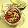 Heat oil in a pan, fry the gyros all around. Add zucchini and fry for 1-2 minutes. Add tomatoes and spring onions and fry briefly. Sprinkle with paprika and flour and sauté briefly while turning. Add cream and 250 ml water. Bring to the boil, stir in stock and simmer for 2-3 minutes. Season with salt and pepper. Layer noodles, sauce and cheese alternately in an ovenproof dish. Finish with cheese.