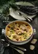 Place the fish on the vegetables, cover the mould and cook in the microwave at 650 watts for five minutes. Remove the fish from the microwave and let it stand for two minutes. In the meantime, completely remove the metal foil from the sauce cup and heat the sauce in the cup for 1 1/2 minutes at 300 watts in the microwave.