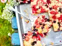 For the dough, mix butter, 40 g sugar and 1 pinch of salt until creamy. Stir in the eggs one by one. Mix flour and baking powder. Alternate with buttermilk and stir into the butter-sugar cream. Heat and grease the waffle iron.