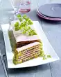 Squeeze the gelatine and dissolve in the still warm broth. Rinse the box form (approx. 10 cm x 20 cm, 1 litre capacity) with cold water and line with foil. Straighten the ham so that it has the width of the box mould. Place the ham on the bottom of the mould first, place some herb and carrot mixture on top and cover with stock. Place the mould in the freezer for 8-10 minutes until the jelly is relatively firm. Repeat this procedure for the next layers until all ingredients are used up. It is best to let the terrine set overnight in the refrigerator. To serve, turn out onto a plate, remove the foil and garnish with chervil