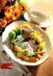 Let everything simmer for about 5 minutes. Drain the pasta. Cut ham into strips. Wash and chop the parsley and put it in the pan with the noodles. Season with salt and pepper.