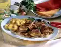 Drain the potatoes and let them drain. Heat milk and 25 g butter, add to the potatoes and mash everything to a puree. Season to taste with salt and nutmeg. Season the sauce with salt and pepper.