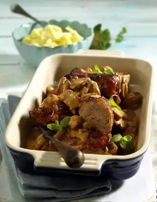 Clean and clean the mushrooms and cut them into slices. Heat the oil in a pan, fry the mushrooms in portions all around, place in a greased casserole dish. Bake in a preheated oven (electric cooker: 200 °C/ convection oven: 175 °C/ gas: level 3) for approx. 15 minutes.