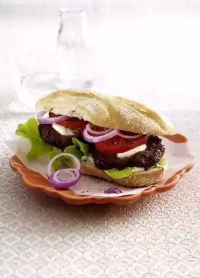 For the hamburger onion peel, cut in half horizontally and finely dice 1 half. Knead minced meat, diced onion, curd and mustard. Season with salt and pepper. Form minced meat into 2 meatballs. Heat oil in a pan. Fry the meatballs for approx. 8 minutes while turning