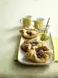 Fold the squares over to form a pocket, press the edges well down. Cut the long side several times to a depth of about 1 cm. Place nut pockets on a baking tray lined with baking paper. Brush with remaining egg white and sprinkle with 20 g nut flakes. Bake in a preheated oven (electric cooker: 175 °C / fan-assisted oven: 150 °C / gas: level 2) for 20-25 minutes. Let them cool down on a cake rack