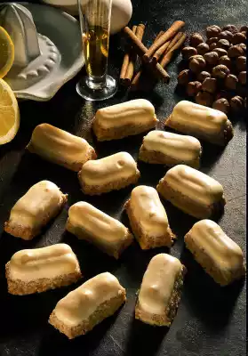 Stir in lemon juice. Sift icing sugar over it. Add rum and carefully fold both into the beaten egg white. Pour into a piping bag with a perforated spout and squirt onto the hazelnut sticks. Bake both trays in the preheated oven (electric oven: 125°C/ gas: level 1) one after the other for about 50 minutes.