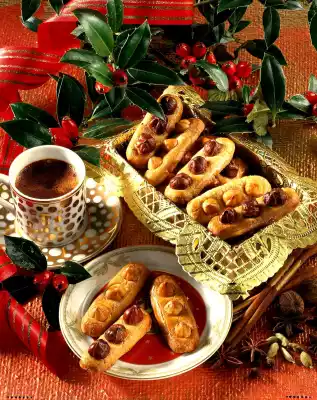 Roll out the dough on a work surface sprinkled with flour to a thickness of approx. 1 cm and cut into sticks approx. 1 cm wide and 8 cm long. Press 3 hazelnuts onto each strip of dough. Place on a baking tray lined with baking paper.