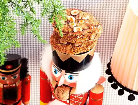 Sprinkle with chopped nuts. Bake the trays one after the other in a hot oven for 8-10 minutes each. Let the hazelnut crispys cool down on the tray.