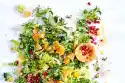 Mix salad ingredients with mixed seeds. Mix in dressing for serving.