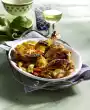 Peel the shallots. Clean, peel and finely dice the carrots. Finely dice bacon. Wash, clean and halve the mushrooms as desired. Heat the oil in a casserole dish, drain the bacon, add the meat and fry all around.