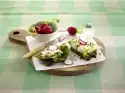 Wash the potatoes and cook in plenty of boiling water for about 20 minutes. Dice the tomatoes. Wash oregano and thyme, shake dry, remove leaves from stalks and chop. Peel onion and cut into fine cubes. Rinse potatoes under cold water, drain and peel