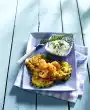 For the vinaigrette, whisk vinegar, salt, pepper and honey. Add oil drop by drop to the vinaigrette. Stir half the onion cubes into the vinaigrette. Peel and wash the carrots and slice them finely with a peeler. Wash the salad, shake dry and pluck into bite-sized pieces. Arrange carrots and salad in a bowl, fold in vinaigrette